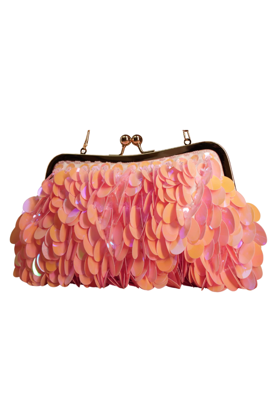 Bolsa clutch, bordada, com fechamento metalizado - rosa.