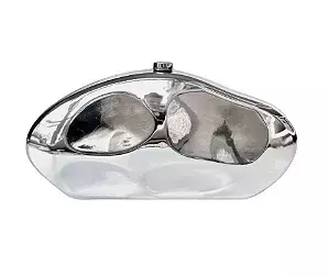 Bolsa clutch metalizada, feita de acrílico de alta qualidade, alça de ombro removível em corrente e parte interna forrada.