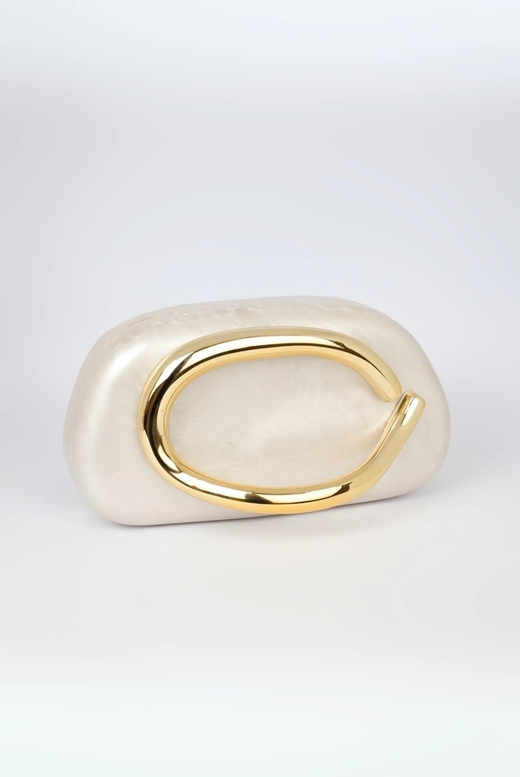Bolsa clutch oval, na cor prata, com a frente em cristais, com forro interno e alça removível. Super estilosa, com ótima qualidade e um tamanho perfeito para festas.