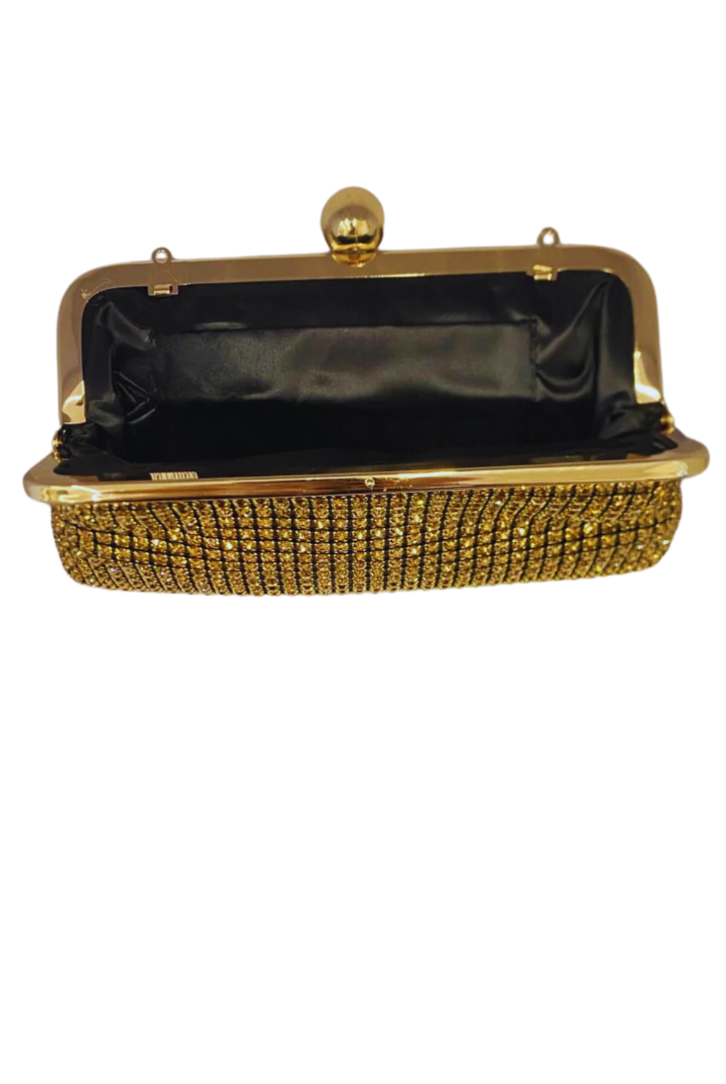 Bolsa clutch com strass dourado com um design exclusivo, se destaca por sua estrutura impecável e detalhes que fazem toda a diferença. Confeccionada com materiais de altíssima qualidade, sua superfície é adornada com delicados cristais que capturam a luz de maneira deslumbrante é a verdadeira definição de sofisticação e elegância. Confeccionada com materiais de altíssima qualidade, criando um brilho único e inconfundível. Seu acabamento refinado e as alças confortáveis. Perfeita para ocasiões especiais, ela traz um toque de glamour e sofisticação a qualquer look, sendo a escolha ideal para quem busca um acessório que transborda luxo e exclusividade.