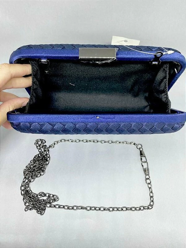 Bolsa clutch em tressé acetinado, com fecho preto.