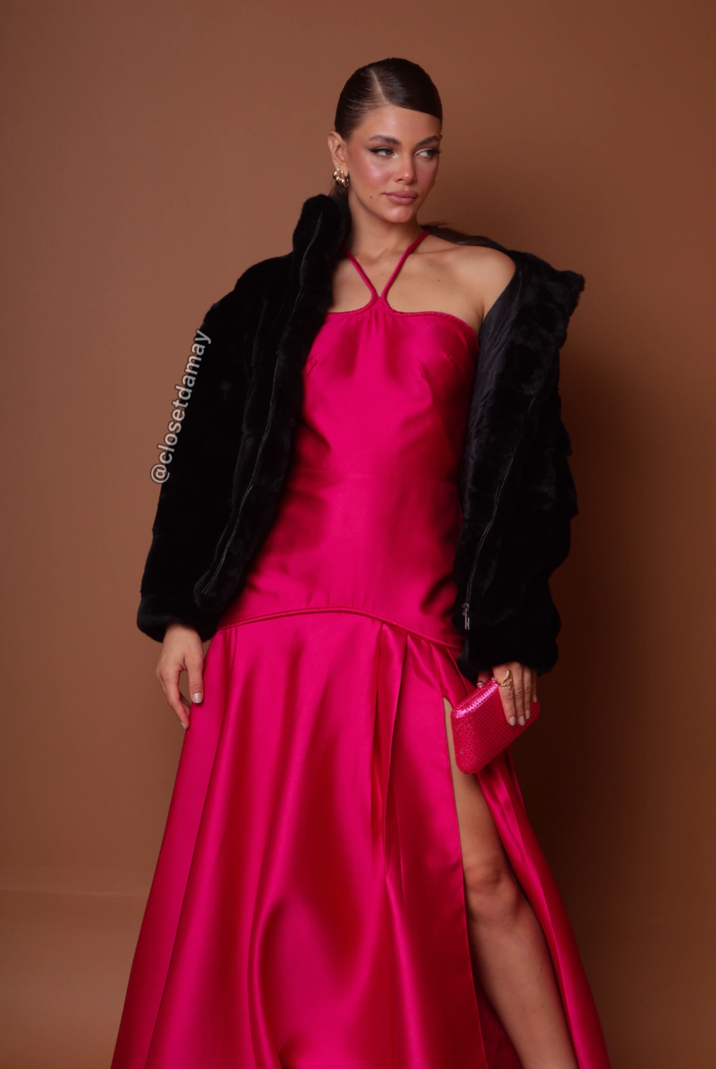 Casaco de pele sintetico, proporciona um caimento impecável, valorizando o corpo e trazendo charme e elegância a peça.