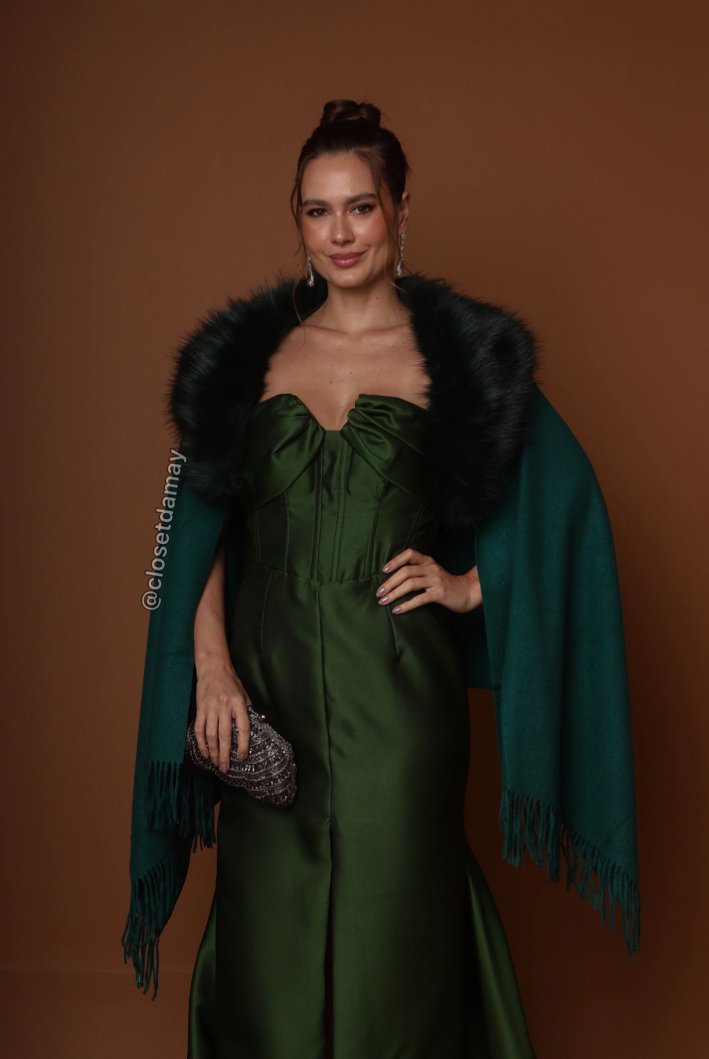 Echarpe com gola e pele sintético, proporciona um caimento impecável, valorizando o corpo e trazendo charme e elegância a peça.