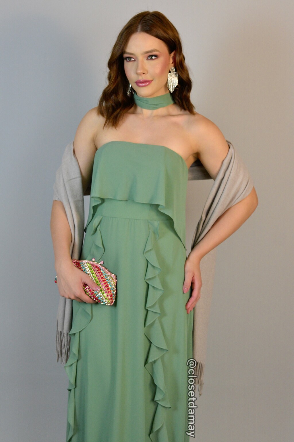 Encharpe de lã na cor cinza, proporciona um caimento impecável, valorizando o corpo e trazendo charme e elegância a peça.