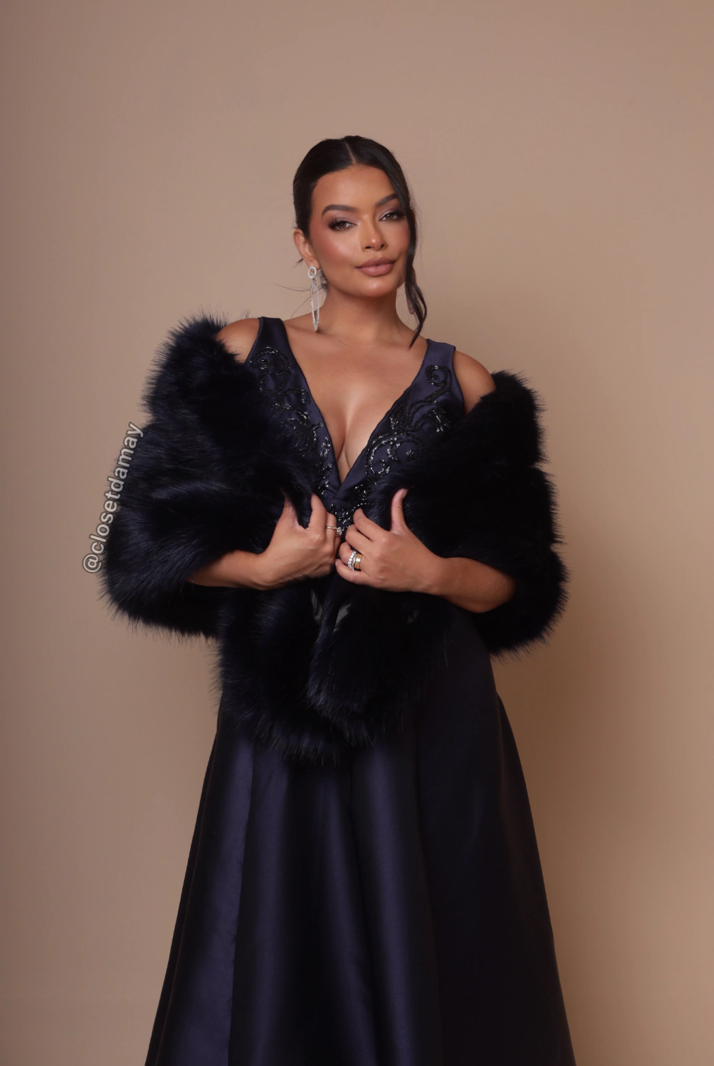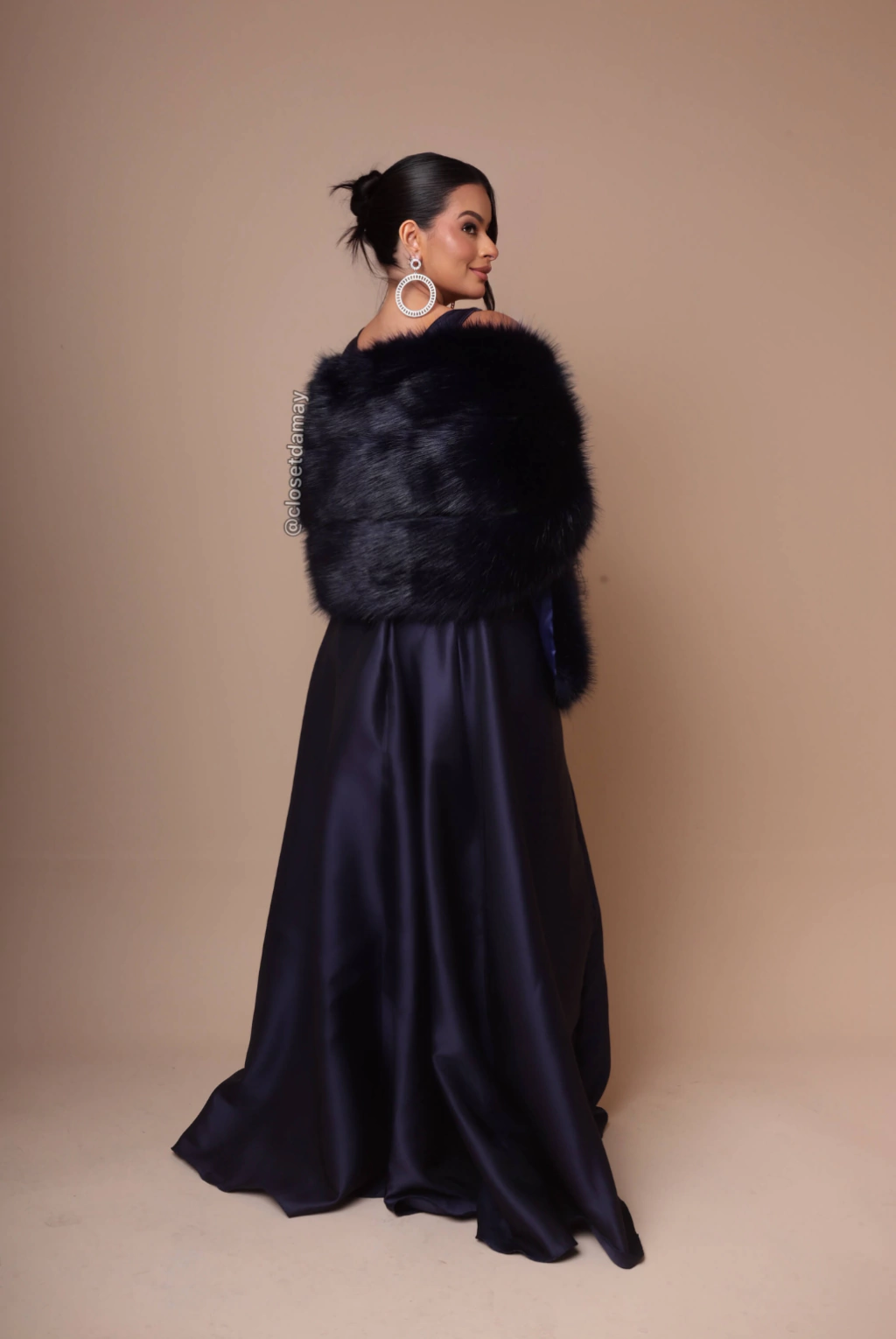 Estola de pele sintetico, proporciona um caimento impecável, valorizando o corpo e trazendo charme e elegância a peça.