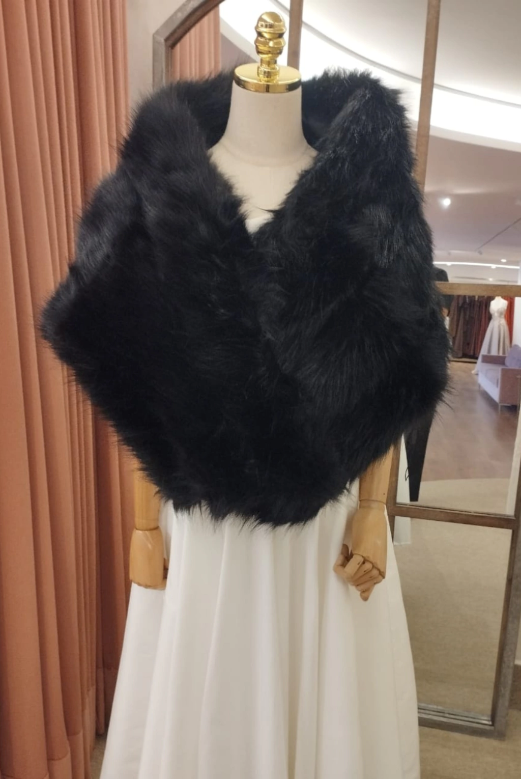 Estola de pele sintetico, proporciona um caimento impecável, valorizando o corpo e trazendo charme e elegância a peça.