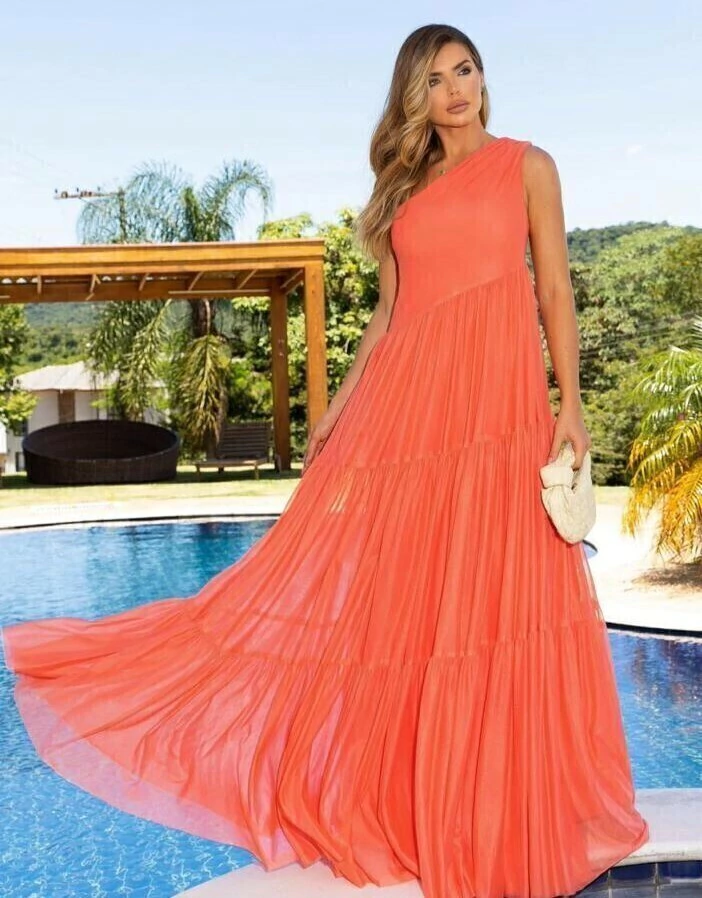 O modelo permite diversas composições, podendo ser usado em casamentos, eventos ao ar livre, praia e em outras ocasiões formais que exigem beleza e elegância. O modelo ideal para você que procura sofisticação e romantismo.Fazem parte dessa paleta de cores o coral, laranja outono, laranja tangerina, laranja papaya, laranja apricot, laranja ambar, laranja salmão e laranja coral entre outros tons de laranja.