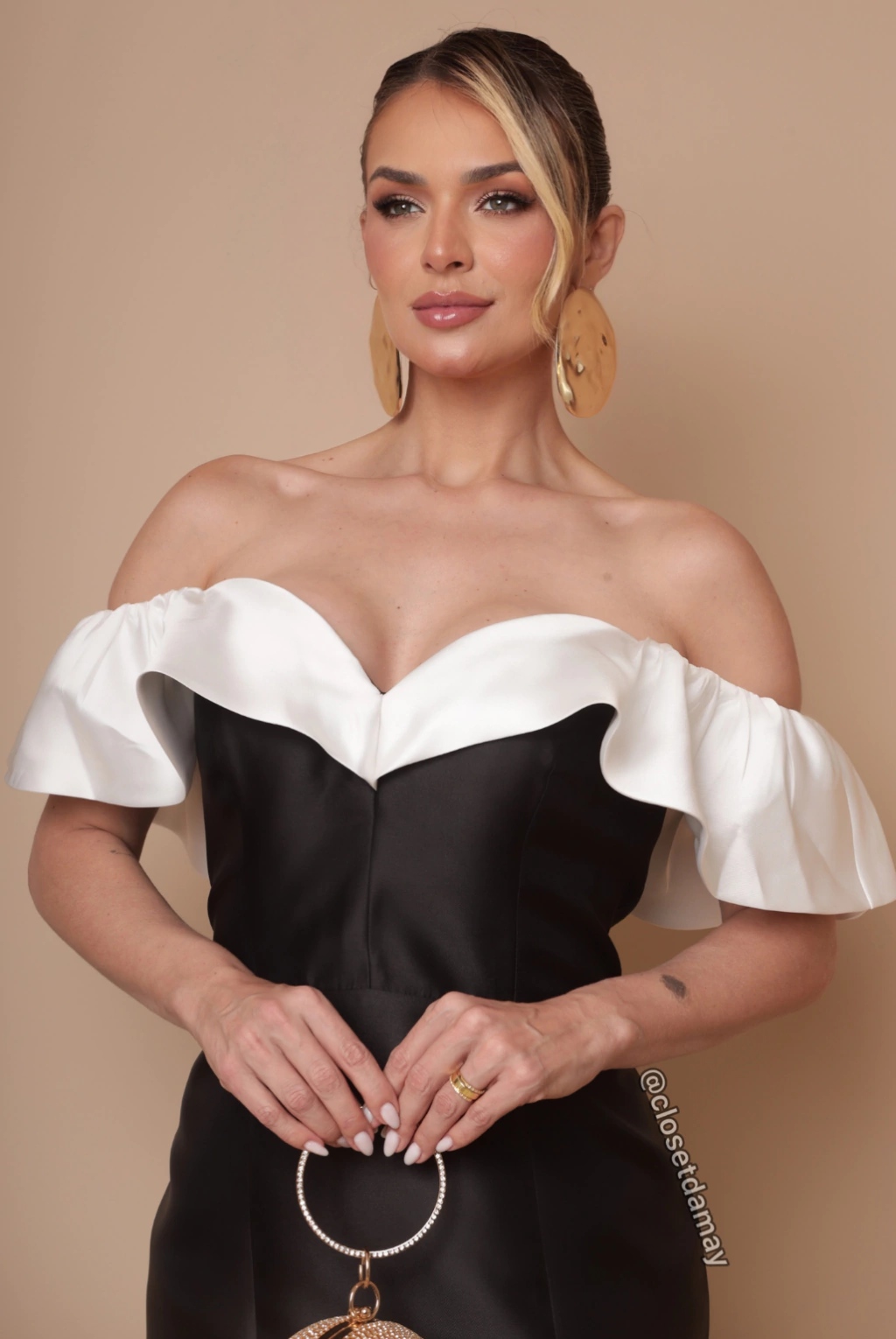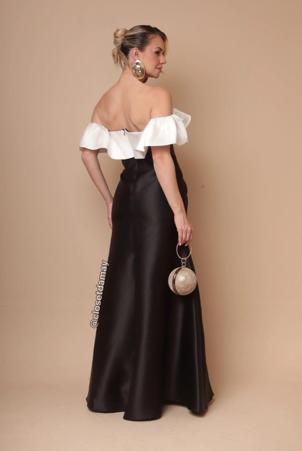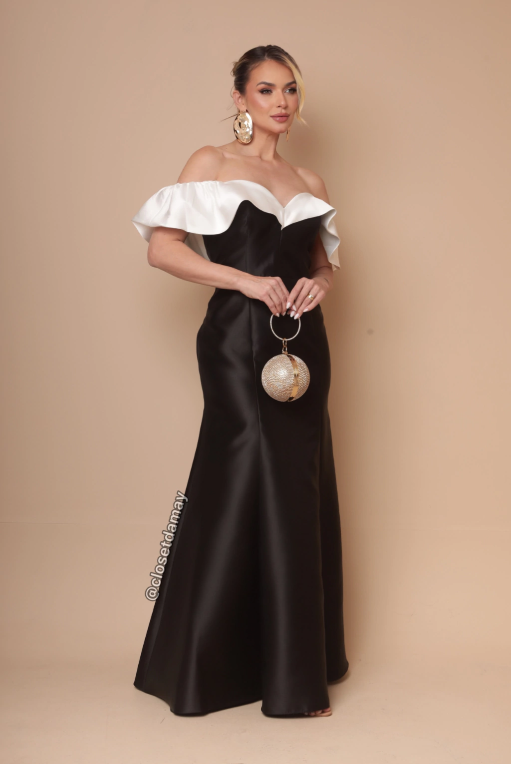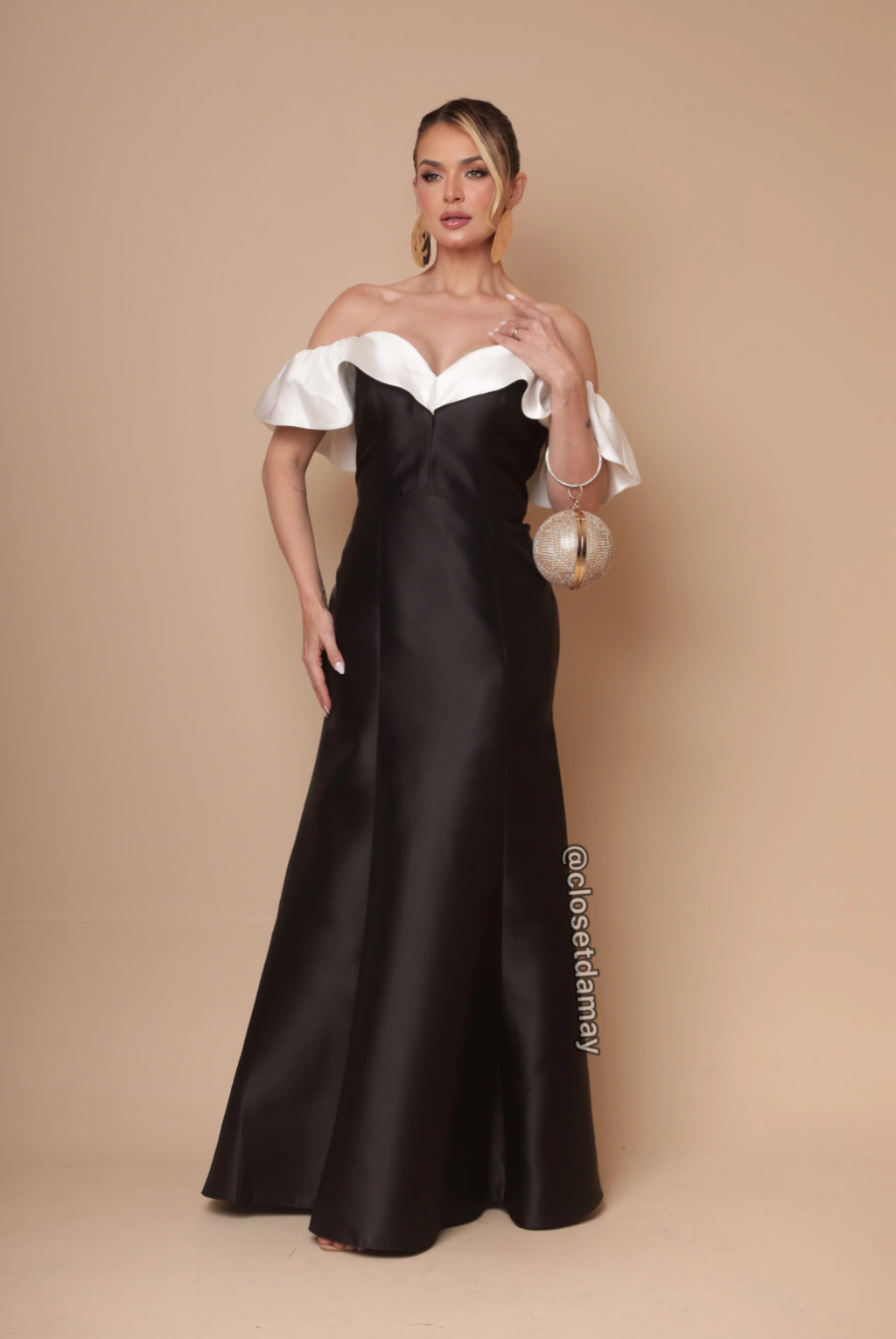 Vestido de festa longo em zibeline, decote V e ombro a ombro, saia sereia. Modalagem sereia encorpado suave, com tecido em zibeline brilhoso e sutil, trazendo ar de elegância e beleza.
