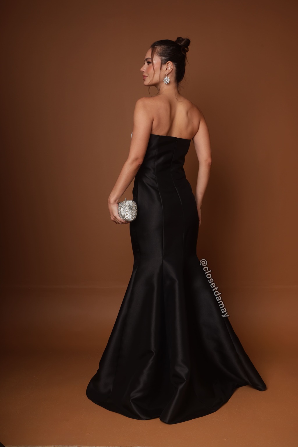 Vestido de festa tomara que caia longo sereia, em zibeline, busto estruturado.