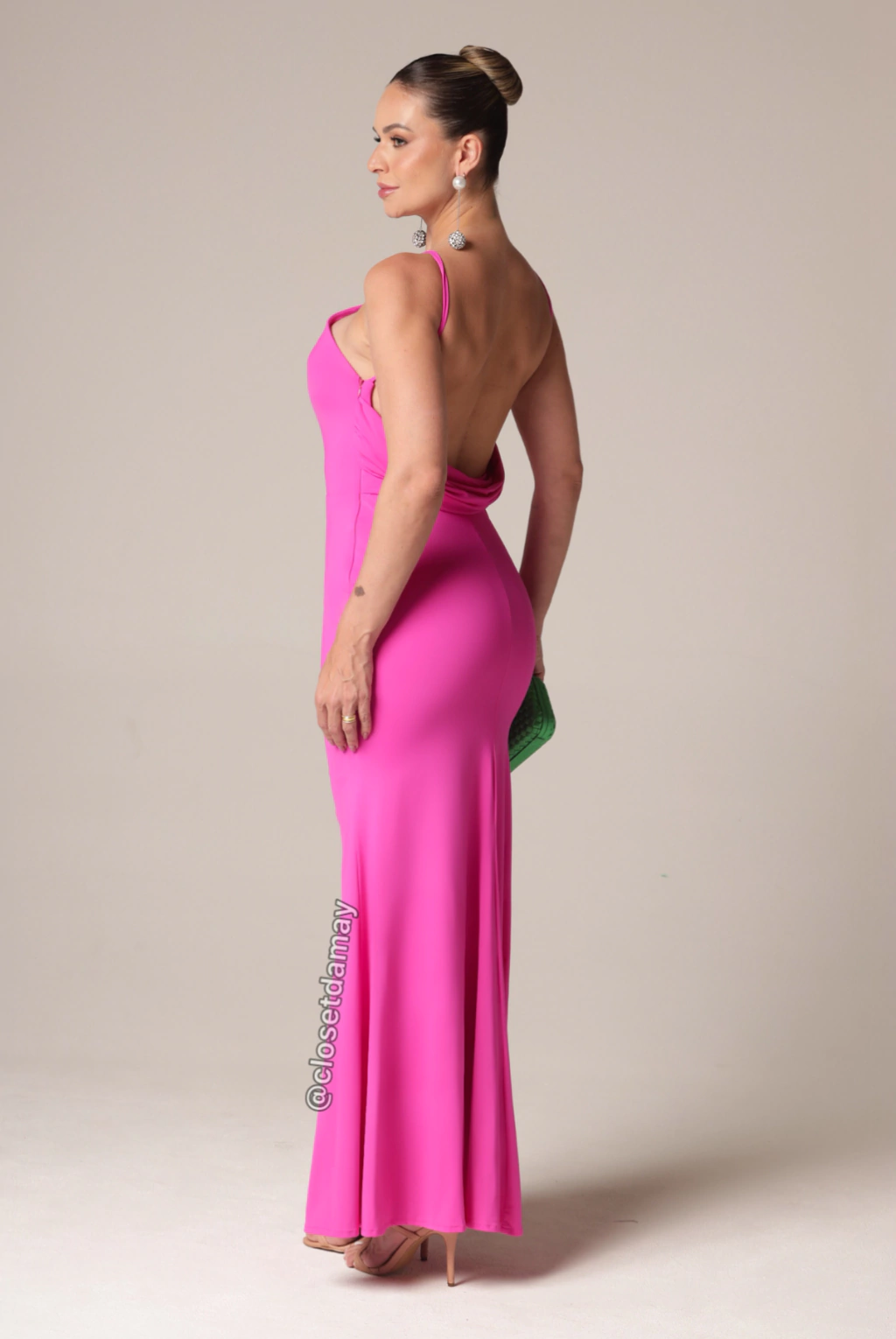 Vestido de festa longo, frente única com alças finas, decote degagê nas costas e saia sereia.Possui bojo, zíper invisível na lateral e forro.