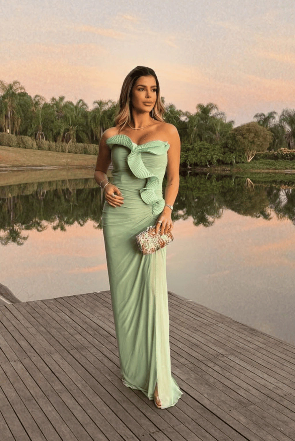 O modelo permite diversas composições, podendo ser usado por convidada de casamentos e formaturas, aniversários e em ocasiões que exigem beleza e elegância. O modelo ideal para você que procura um vestido estiloso e moderno.