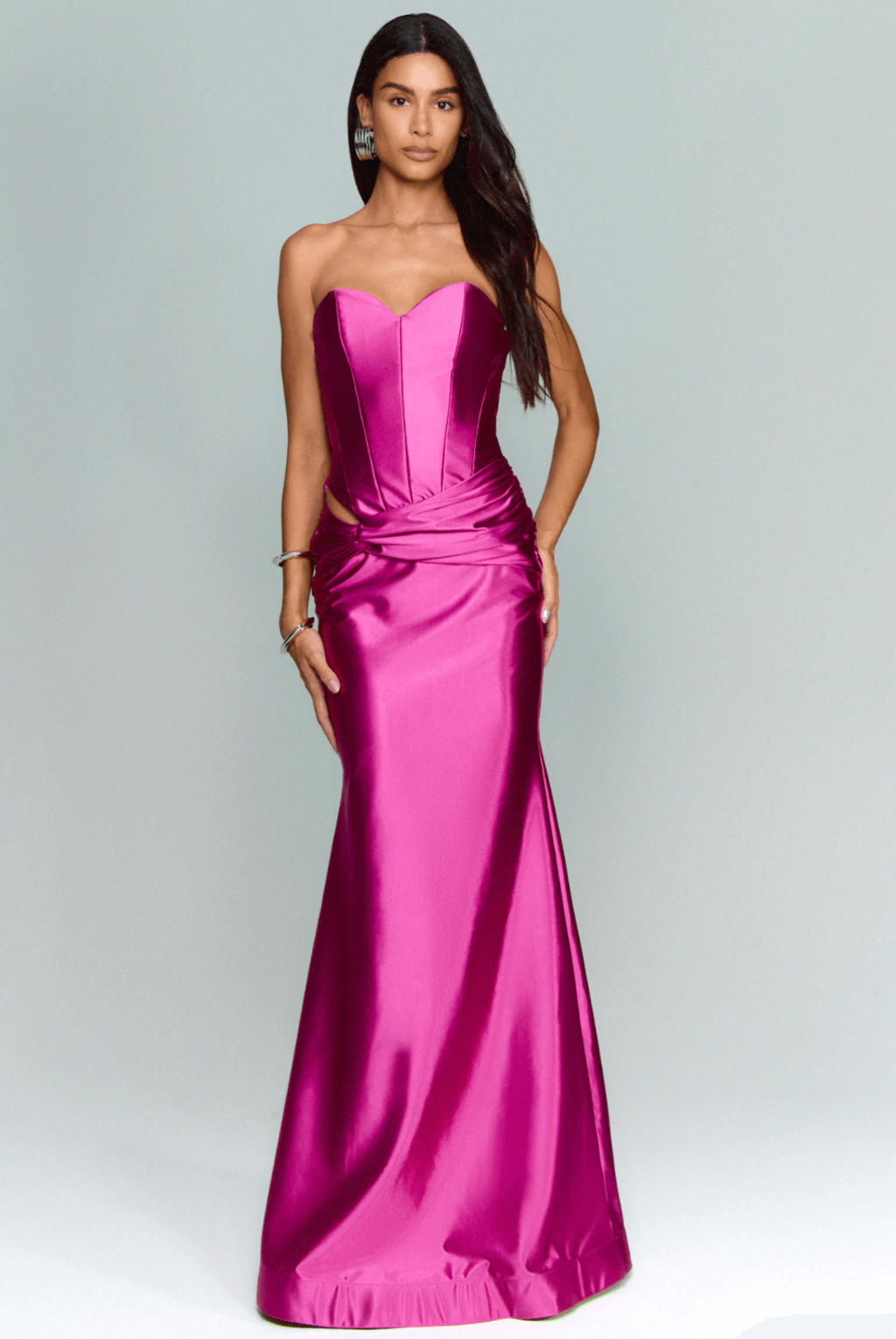 Vestido sensual e Sofisticado com modelagem tomara que caia, corset estruturado e decote coração, este vestido realça suas curvas com elegância. O recorte estratégico na cintura e o nó lateral garantem um toque sensual, enquanto a saia sereia com cauda sutil traz movimento. Possui bojo, entretela na barra e zíper invisível nas costas para um ajuste impecável. Puro glamour!