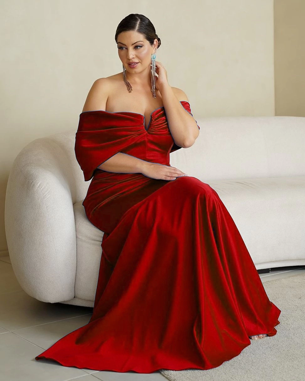 Vestido de festa longo, em crepe acetinado, ombro a ombro, modelagem sereia, leve drapeado no busto. Possui bojo, forro e zíper.